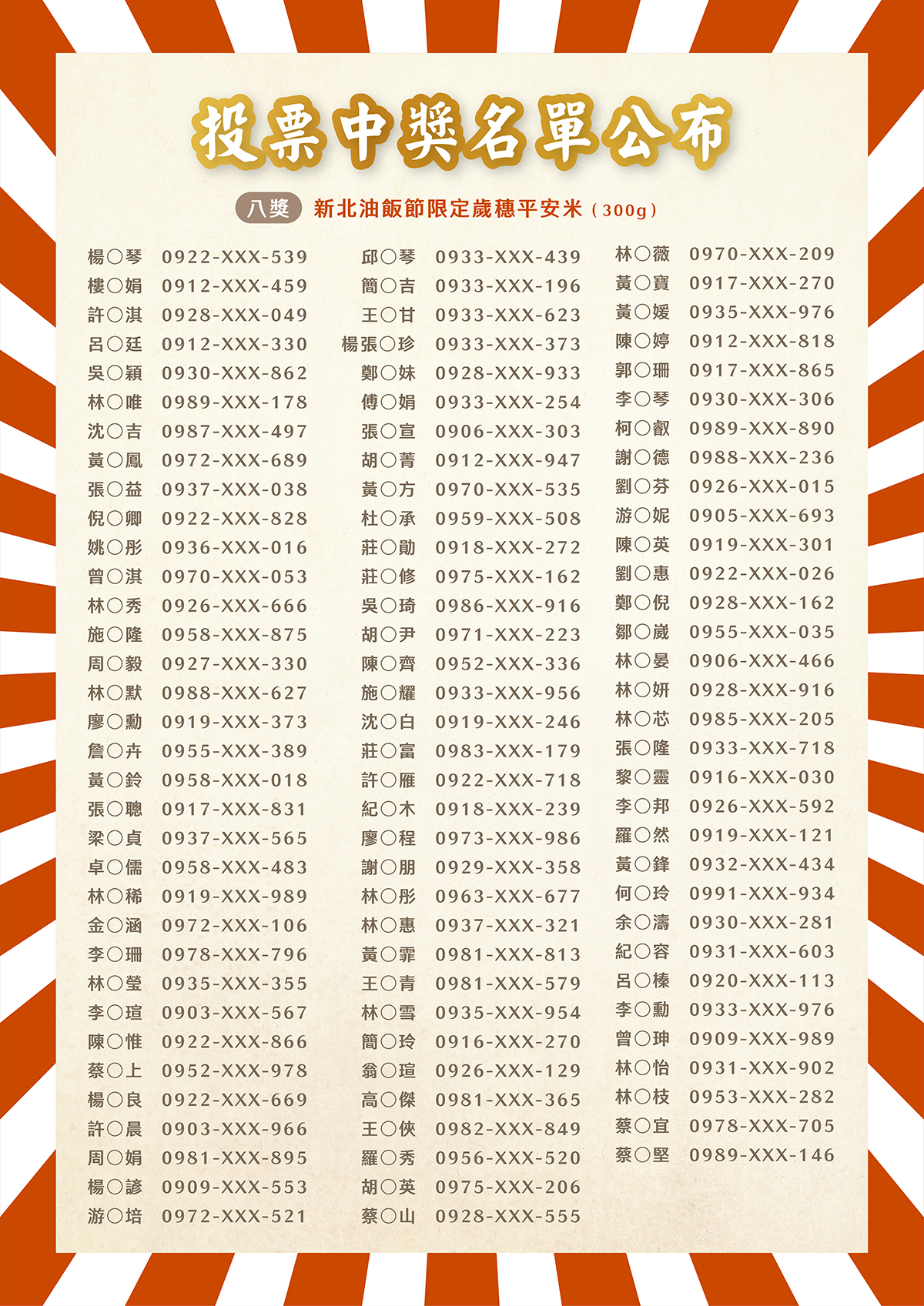 「新北油飯節新北油飯節投票中獎名單公佈
